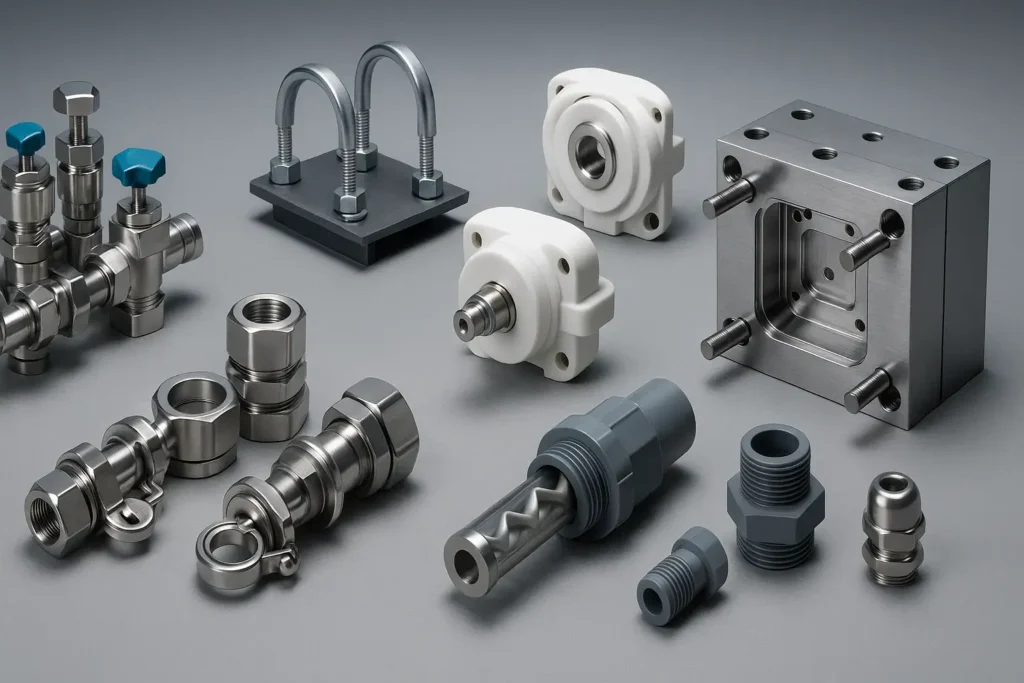 Fabricación y componentes en acero inoxidable, plásticos de ingeniería y metales no ferrosos, con seguridad y desempeño comprobable.